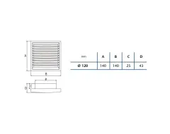 Venkovní mřížka k ventilátorům CATA LHV 225 – se spádovými žaluziemi