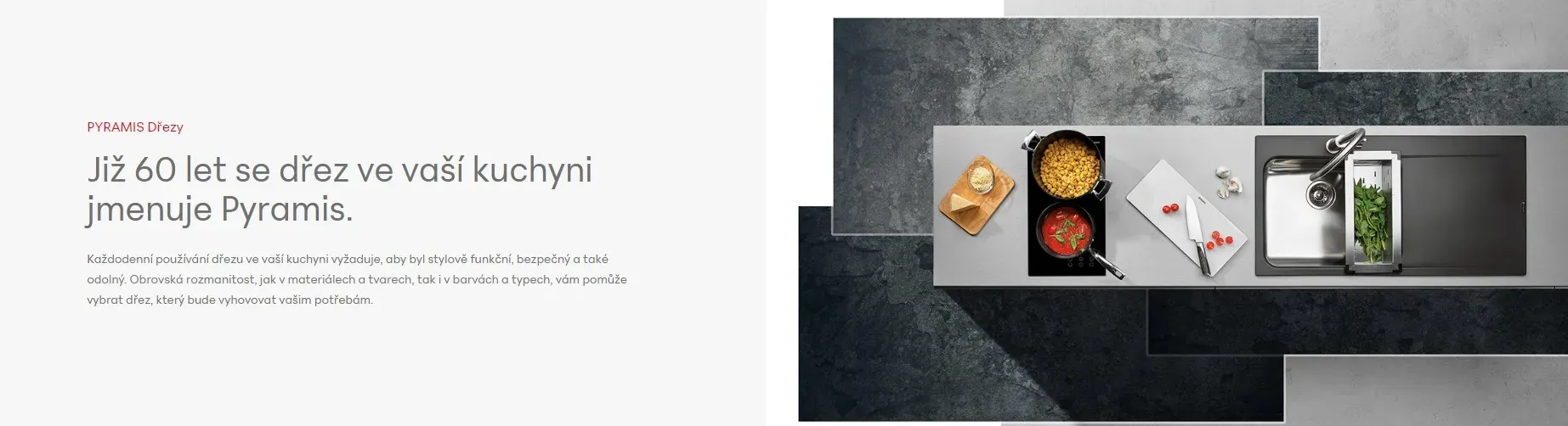 Vždy neúnavně hledíme vpřed Pyramis Metallourgia Α.Ε. je řecká společnost, která vyrábí a prodává integrovaná řešení kuchyní a koupelen. V roce 1960 ji založil Alexandros Bakatselos jako rodinnou firmu a dnes je společnost jedním z největších výrobců nerezových dřezů na světě s významnými globálními strategickými partnerstvími. Sídlí v Soluni, kde se nachází její továrna, což je podle řeckých poměrů skutečný úspěch, protože se jedná o jednu z největších jednotek na výrobu nerezové oceli na světě. V roce 2013 byl ve městě Kilkis zahájen provoz nové továrny na dřezy z žuly a syntetických materiálů. In 2013 operations began at a new granite and synthetic sink plant in Kilkis. Dnes společnost Pyramis udává novou definici svému profesionálnímu charakteru a obnovuje kvalitu označení „Vyrobeno v Řecku“ díky nové továrně v Oinofytě, kde do nových elektrických spotřebičů zavádí ty nejvyšší standardy designu a funkčnosti, a vytváří tak bezproblémový zážitek z chytré domácnosti.