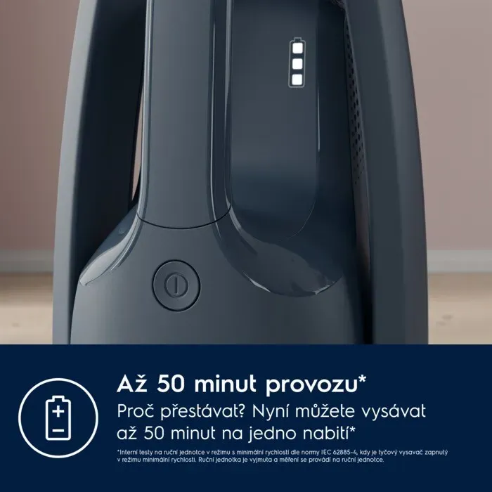 Až 50 minut provozu** pro pohodlné uklízení bez přerušení