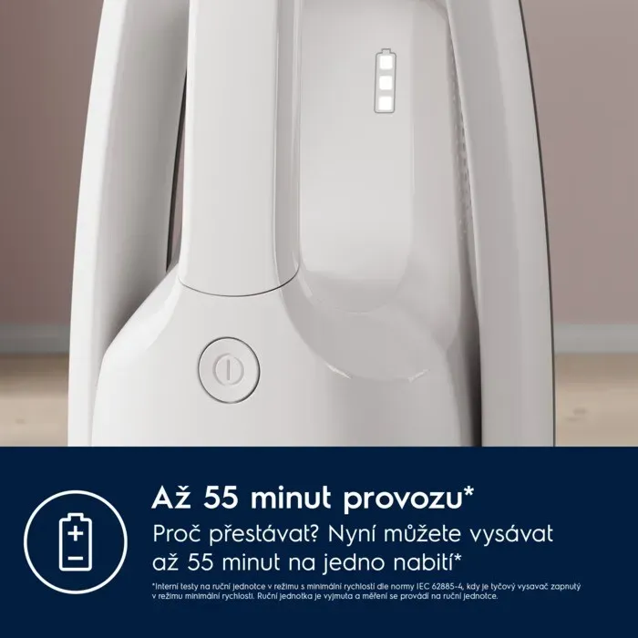 Až 55 minut provozu** pro pohodlné uklízení bez přerušení.