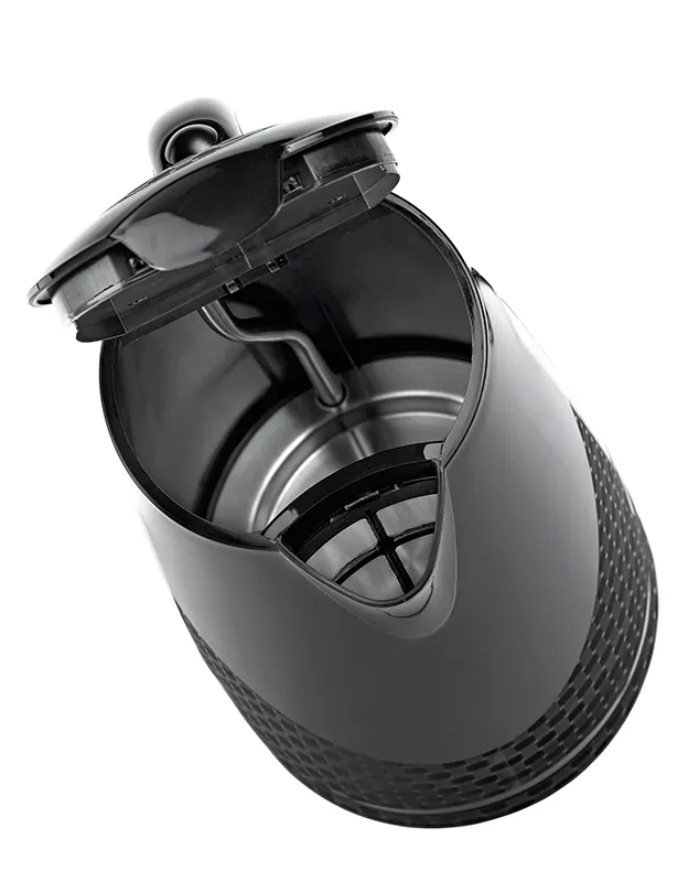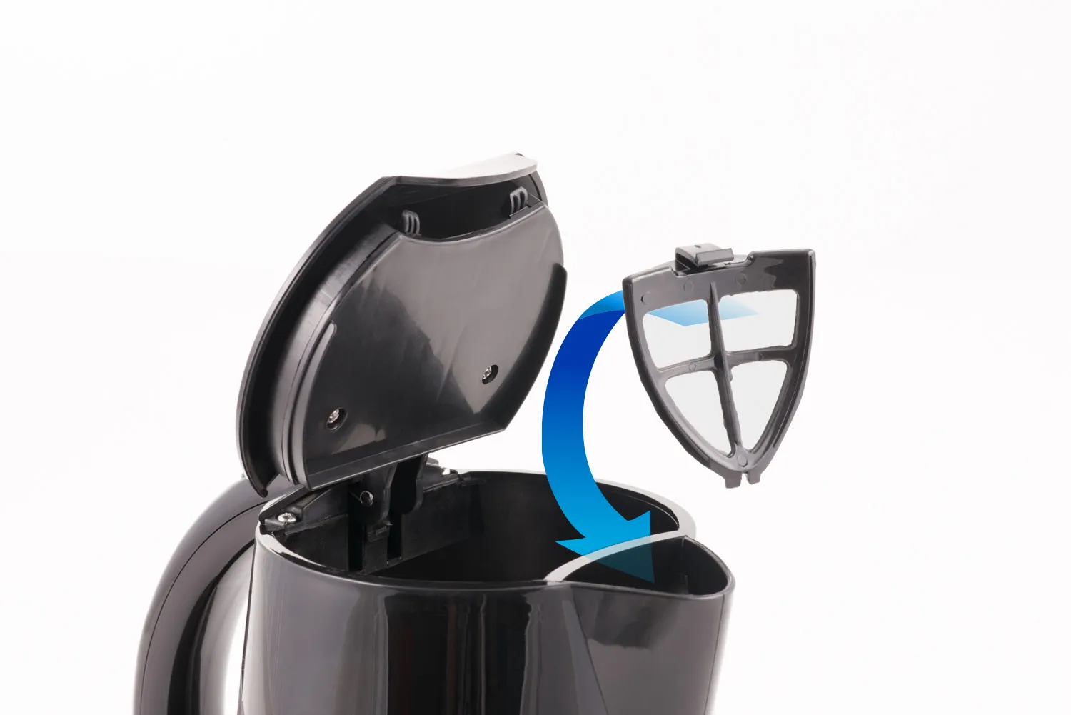Široké tělo konvice, skryté topné těleso a vyjímatelné sítko proti vodnímu kameni umožňují snadné čištění. Výhodou je otočný podstavec o 360 st., takže nemusíte řešit, z jakého úhlu konvici na podstavec umístíte.