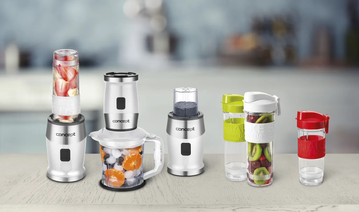 • Set obsahuje mixér + chopper 1200 ml s dvojitým nožem + mlýnek na koření a kávu + 3 mixovací nádoby: bílou o objemu 570 ml, černou o objemu 570 ml a červenou o objemu 400 ml