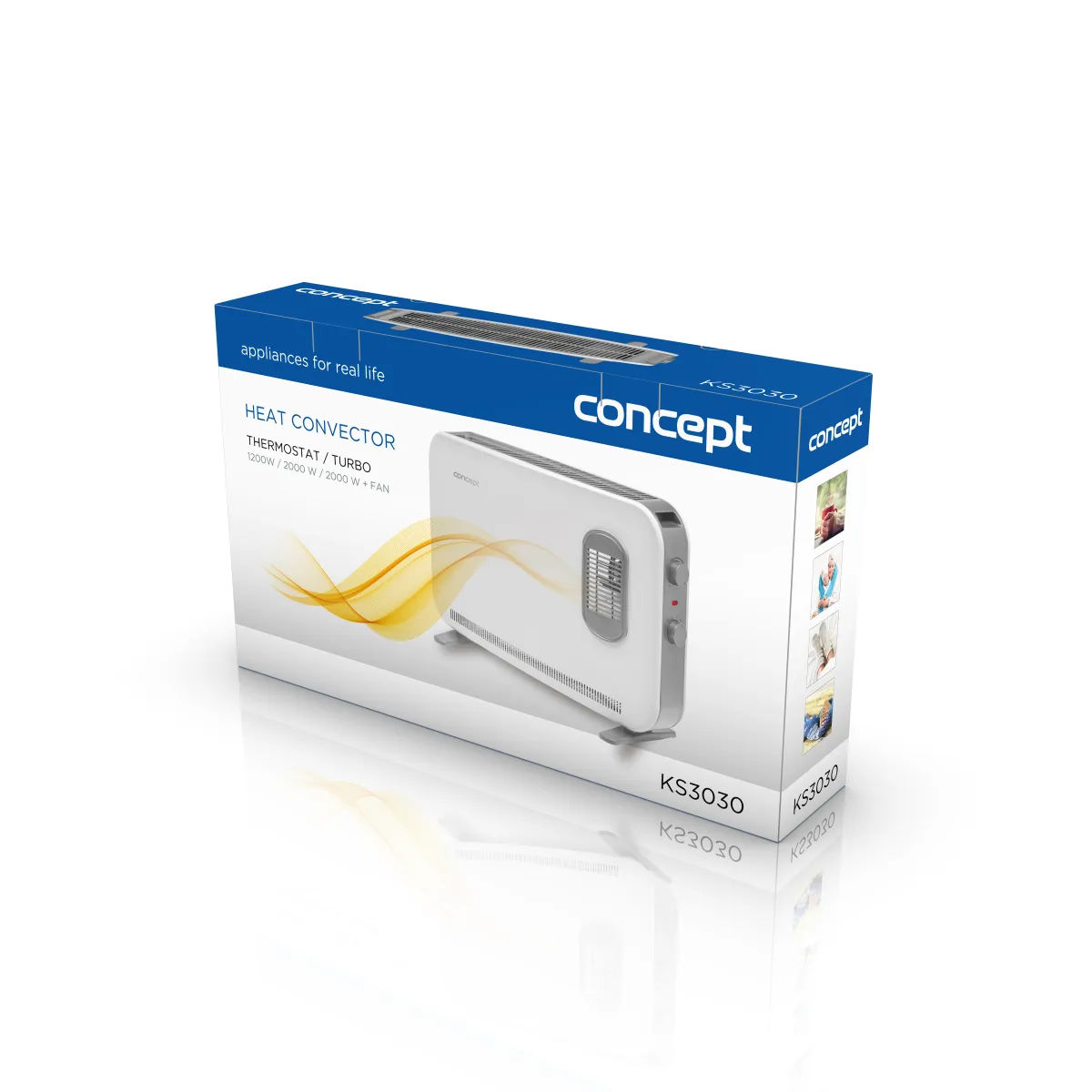 S konvektorem KS3030 od Conceptu vás zima nezaskočí. Rychle vyhřeje požadovaný prostor a díky termostatu, který automaticky spíná a vypíná topné těleso, udržuje zvolenou teplotu. Zbytečně nedochází k přetápění prostor a zároveň šetří spotřebu energie.