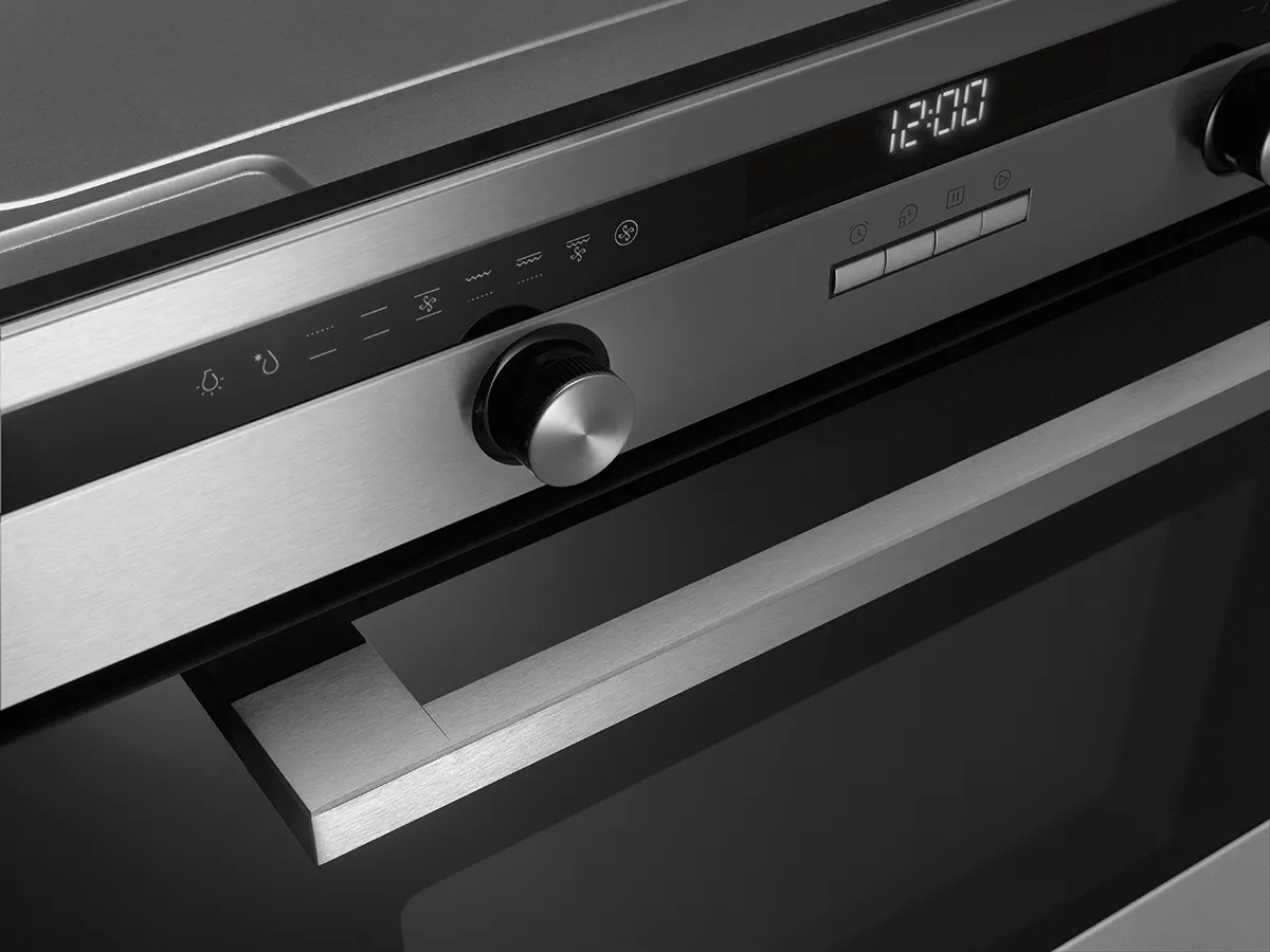 Elektrická multifunkční trouba ETV7460ss je součástí designové linie Sinfonia, která propojuje velké i malé kuchyňské spotřebiče tak, aby v kuchyni tvořily jednotný celek. Je zpracovaná v moderním nerezovém provedení v kombinaci s černým sklem. Disponuje elegantním ovládacím „slim“ panelem, který ji přidává na celkové atraktivitě.
