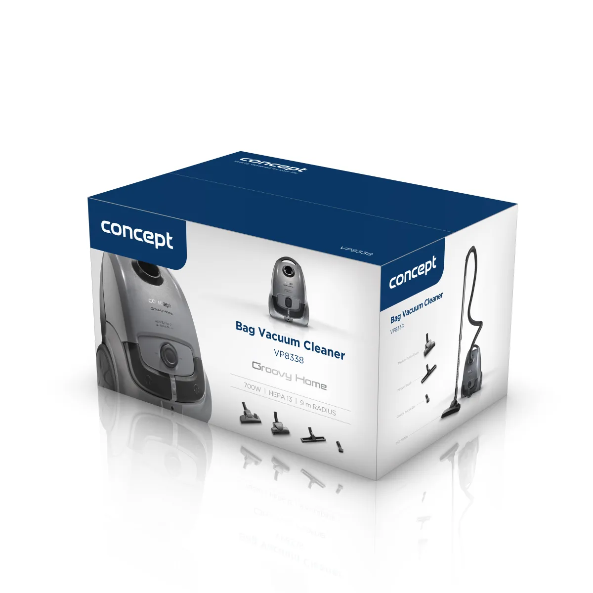 Sáčkový vysavač Groovy Home VP8338 je osazen vysoce účinným ECO motorem o příkonu 700 W, který má zásluhu na vynikajícím sacím výkonu. Sací sílu můžete jednoduše upravit díky elektronické regulaci. Perfektně si poradí s úklidem tvrdých podlah i koberců. Je skvělým pomocníkem pro běžný úklid a díky bohatému příslušenství ho ocení i majitelé chlupatých mazlíčků. Omyvatelný HEPA filtr 13 zachytí i ty nejjemnější prachové částice, takže je vhodný i pro alergiky a astmatiky.