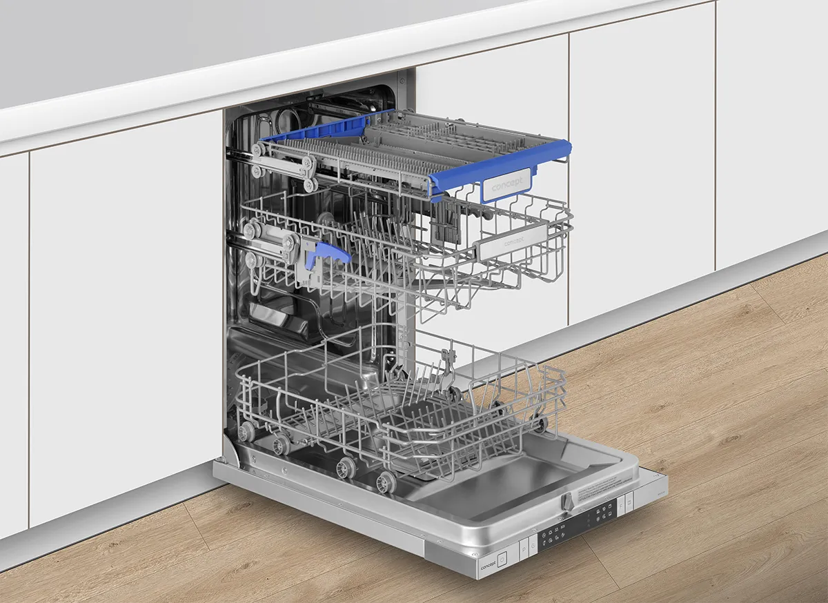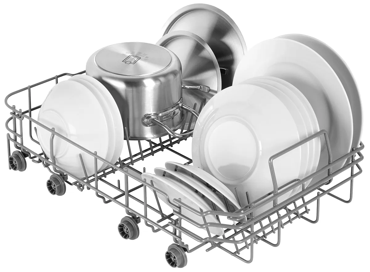 Variabilní příborová zásuvka vám umožní mytí i rozměrnějšího nádobí. Zásuvku můžete jednoduše přesunout, takže vám vznikne větší prostor v horním koši. Těžko budete hledat nádobí, které by se do myčky nevešlo.