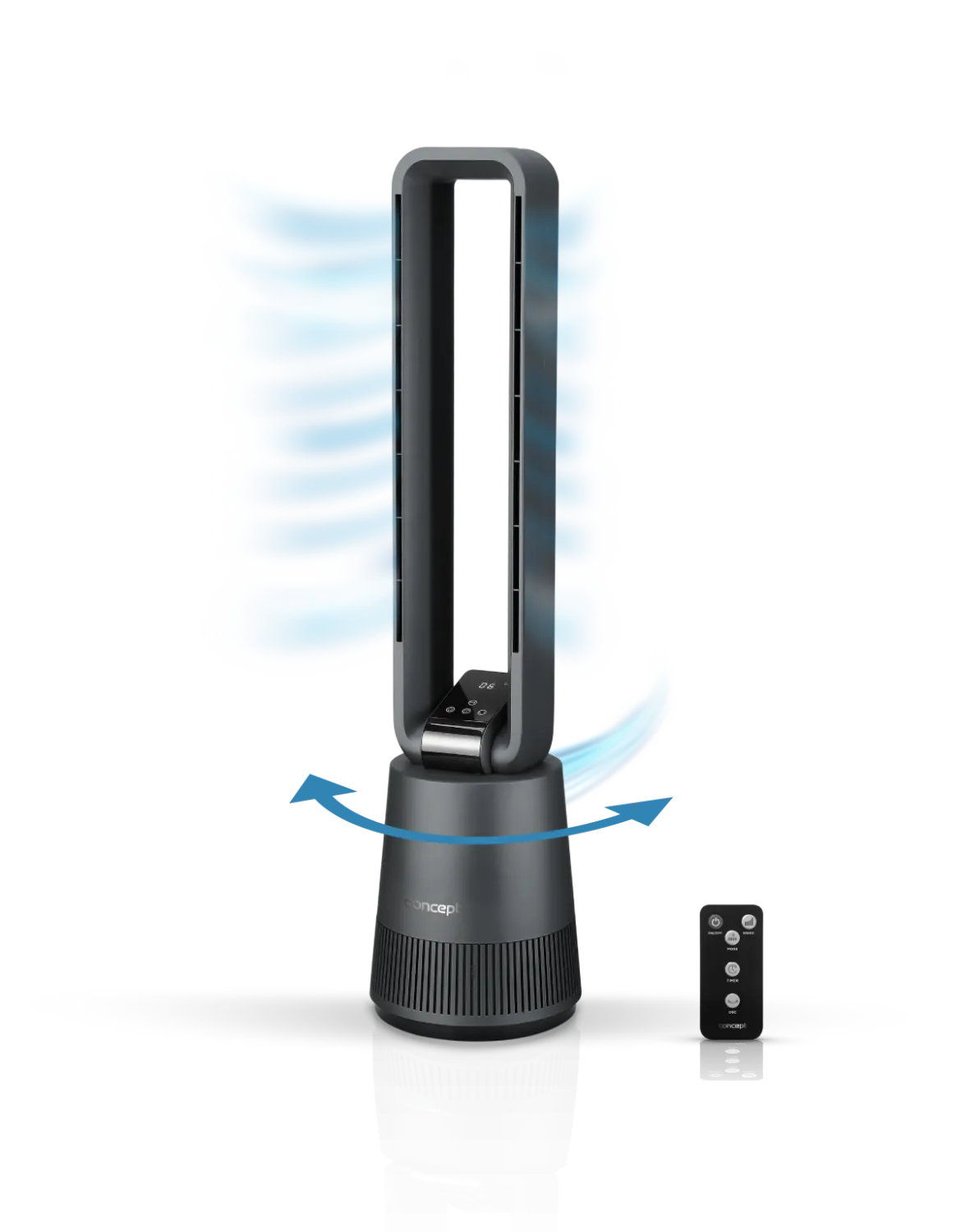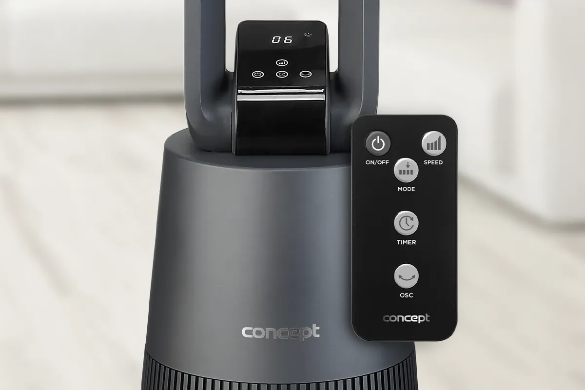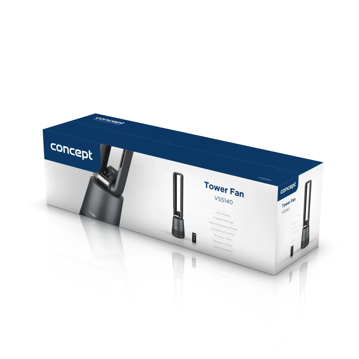 Sloupový ventilátor Concept VS5140 přinese příjemné ochlazení během horkých letních dnů. Vyniká elegantním designem, díky kterému se hodí do každé moderní domácnosti. Velkou předností je jeho bezlopatkové provedení, což ocení především domácnosti s malými dětmi, protože eliminuje nebezpečí úrazu. Ventilátor je vybaven stabilní základnou, která zajišťuje maximální bezpečnost během provozu a zabraňuje nechtěnému převrhnutí. S příkonem pouhých 50 W se řadí mezi velmi úsporné spotřebiče.