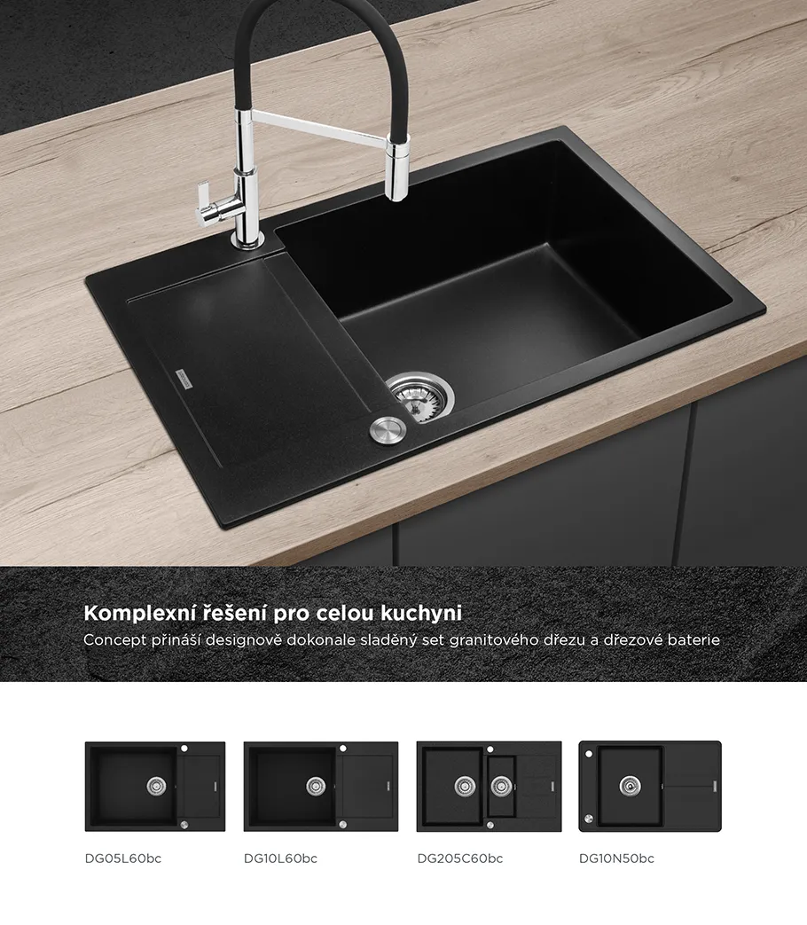 Dřezová baterie BDC7547 s lesklým chromovým povrchem vyniká moderním zpracováním a elegantním designem. Je vybavena flexibilní silikonovou hadicí, kterou kdykoliv můžete snadno odejmout. Díky této hadici se lehce dostanete i na méně přístupná místa a dokonale umyjete každý kousek vašeho nádobí. Baterii BDC7547 snadno sladíte s jakýmkoliv dřezem Concept.