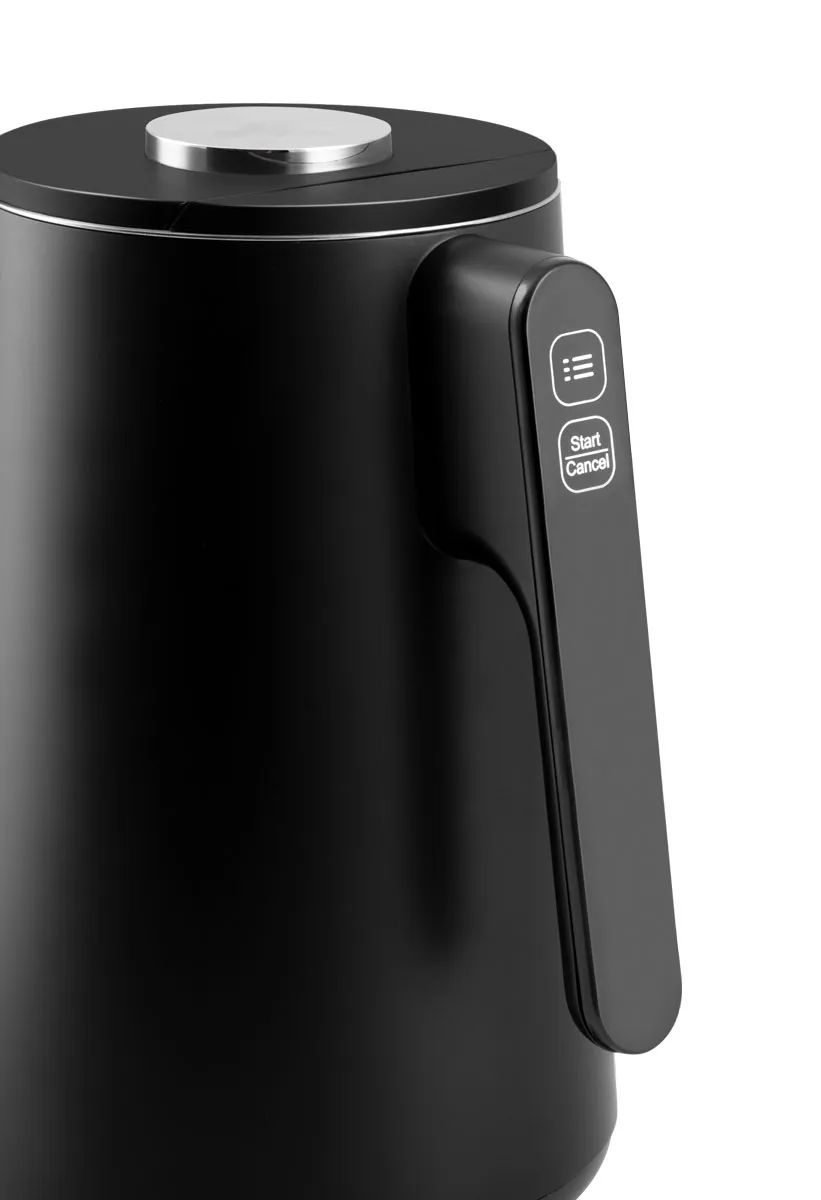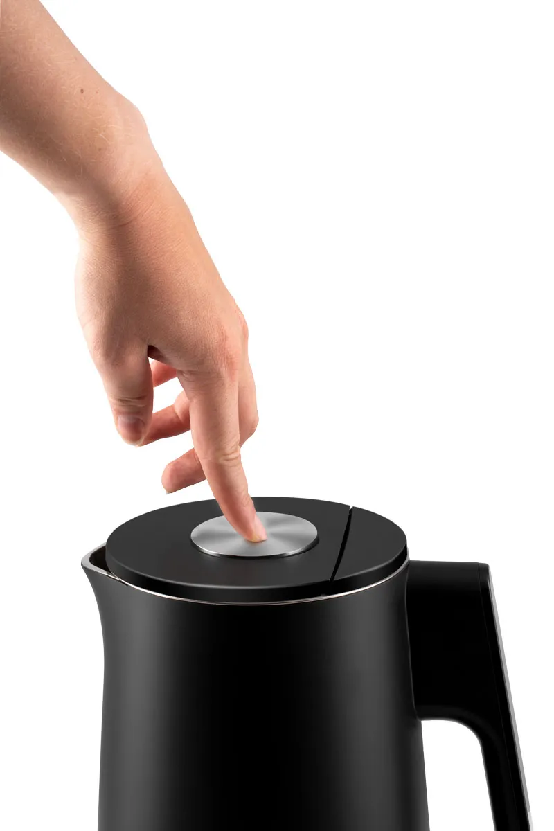 Rychlovarná konvice RK3340 Intuitive s objemem 1,7 l propojuje moderní technologie a užitečné funkce. Vyniká atraktivním designem, který podtrhuje přehledný digitální displej umístěný na těle konvice. S příkonem 1500 W dosahuje srovnatelných výsledků jako obdobné modely s příkonem až 2200 W. To znamená, že vodu ohřeje stejně rychle, ale s nižší spotřebou energie. Dalším úsporným řešením je dvojitý plášť, díky kterému vydrží uvařená voda v konvici déle teplá.