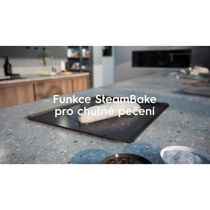 Technologie SteamBake přidá na začátku pečení k horkému vzduchu páru, která na pokrmech vytvoří křupavou kůrku, ale uvnitř zůstanou vláčné. Těsto vlivem páry krásně dokyne, a bude ještě nadýchanější.