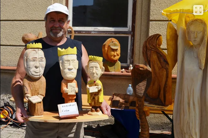 „Letos na Dřevořezání přijelo 40 řezbářů z celé republiky, také je tady asi deset našich místních. Každý z nich tu musí nechat hotovou figurku do společného betléma, který je vystavený v Schumpeterově domě a má dohromady okolo 850 figurek a staveb,“ uvedla místostarostka Třeště Eva Požárová.