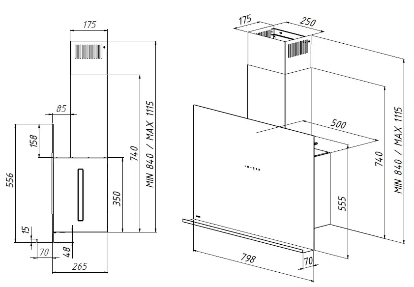 Komínová digestoř ke zdi, šíře 80 cm, černá / černé sklo, max. výkon 382 m³/h (5 Pa), hlučnost Lw 59 – 69 dB(A), 3 rychlosti, odsávací jednotky mají individuálně vyvažovanou turbínu, motory jsou opatřené vratnými tepelnými pojistkami (při přetížení motoru vypne, po jeho vychladnutí opět sepne), kovové sendvičové tukové filtry, které lze mýt v myčce, výstupní průměr 150 mm, možnost práce v odtahovém i recirkulačním režimu, VIP výbava: úsporné LED osvětlení 3 × 2,8 W, elektronické dotykové ovládání s doběhovým časovačem, zdarma dálkový ovladač i s bateriemi, zdarma redukce na 120 mm a zpětná klapka, Benefity: používání dálkového ovládání usnadňuje údržbu digestoře (méně otisků na digestoři = snazší čištění), ovladač je opatřený magnetem, lze jej přichytit třeba na dveře lednice (může být snadno po ruce, nikam nezapadne), šikmá digestoř zvětšuje manipulační prostor nad varnou deskou a výrazně omezuje riziko bouchnutí se do hlavy o digestoř, šikmá digestoř může být instalovaná o 10-15 cm níž, než digestoře s rovnou spodní částí (snazší dostupnost ovládacích prvku i pro osoby menšího vzrůstu)