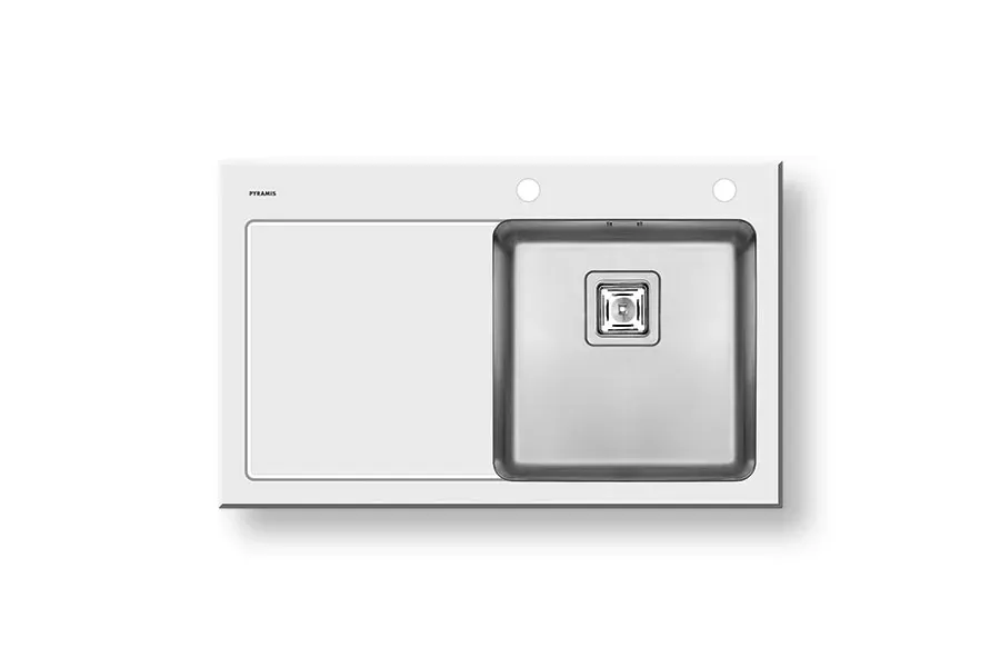 povrchová úprava dřez nerez a bílé povrchové sklo