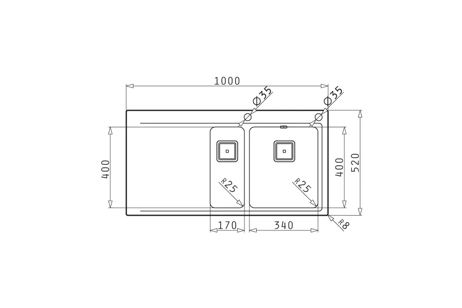 | Rozměr dřezové nádoby | 170 x 400 x 140mm / 340 x 400 x 200mm |