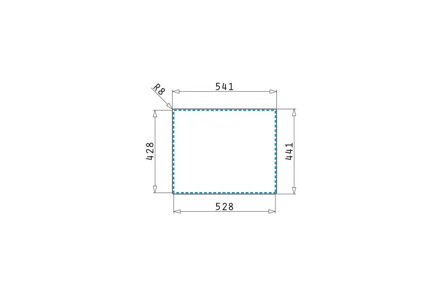 Horní nástavná montáž - 4 strany s ohybem dolůNasazený dřez je tvarován tak, že všechny čtyři obvodové hrany mají ohyb směrem dolů.