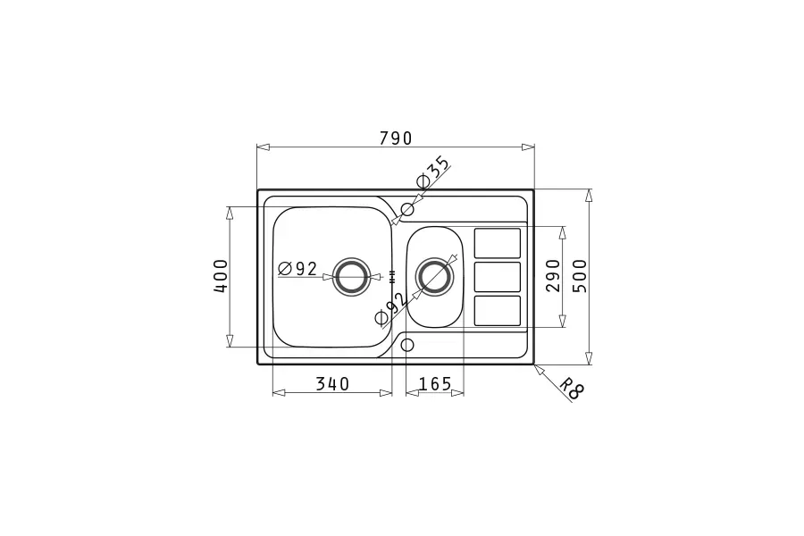 | Rozměr dřezové nádoby | 340 x 400 x 190mm / 165 x 290 x 130mm |