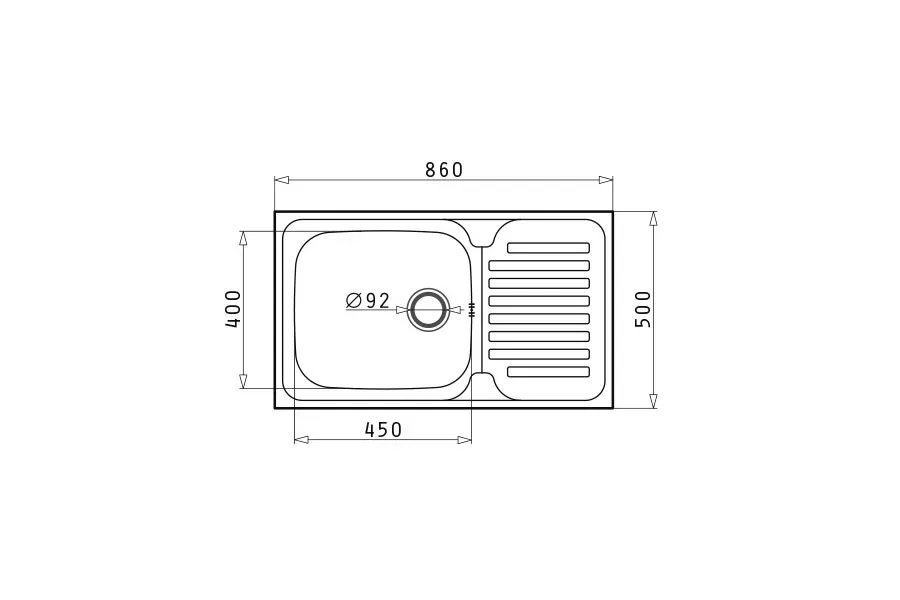 Odpadní ventilyPrůměr odtoku určuje typ odpadního ventilu. Dřezy jsou k dispozici s průměrem 60 mm, 92 mm nebo čtvercový odtok (v závislosti na modelu).