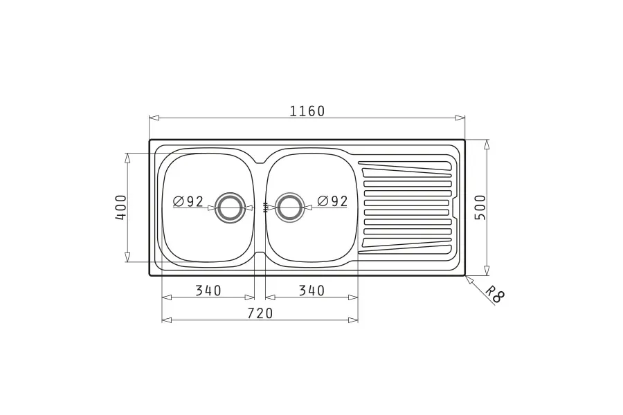 | Rozměr dřezové nádoby | 340 x 400 x 150mm / 340 x 400 x 150mm |