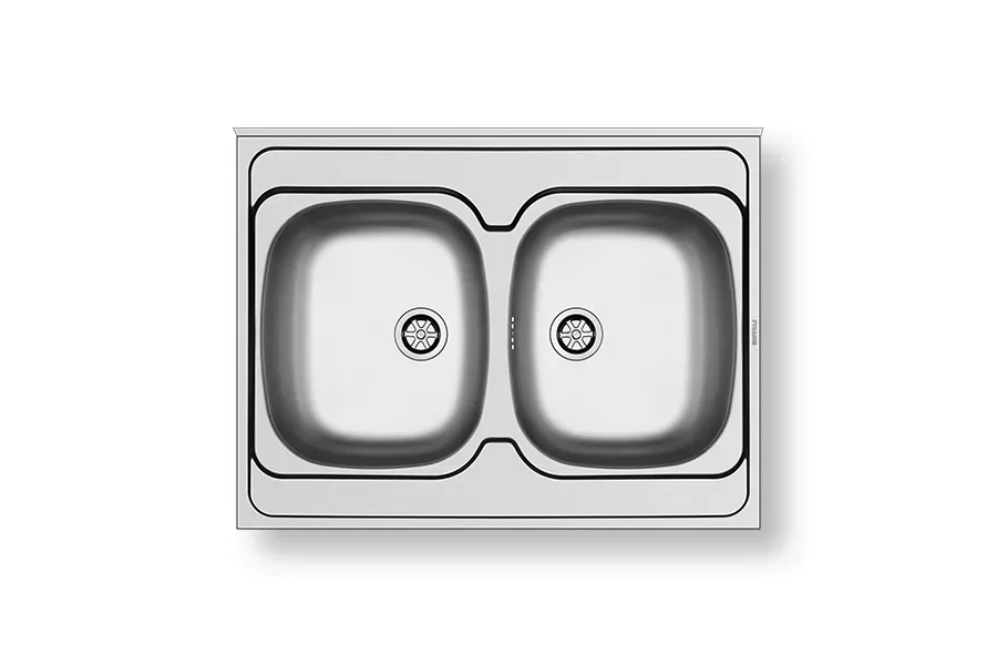 Nasazený dřez je tvarován tak, že všechny čtyři obvodové hrany mají ohyb směrem dolů.