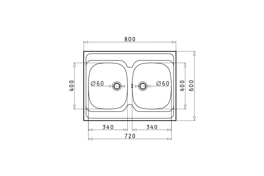 Průměr odtoku určuje typ odpadního ventilu. Dřezy jsou k dispozici s průměrem 60 mm, 92 mm nebo čtvercový odtok (v závislosti na modelu).