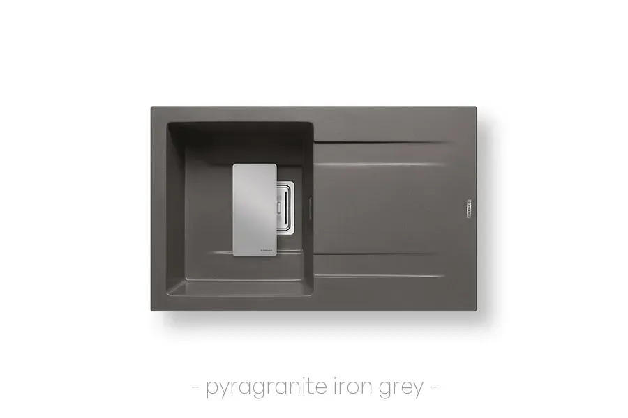 PYRAGRANITE KARTESIO (79X50) 1B 1D IRON GREY Složení & Barvy Dřezy Pyragranite tvoří z 80% přírodní žula (silica), zbývajících 20% tvoří směs pryskyřic a jiných látek, které fungují jako pojivo. Můžeš najít dřezy PYRAMIS Pyragranite v 8 různých barvách: Snow,…