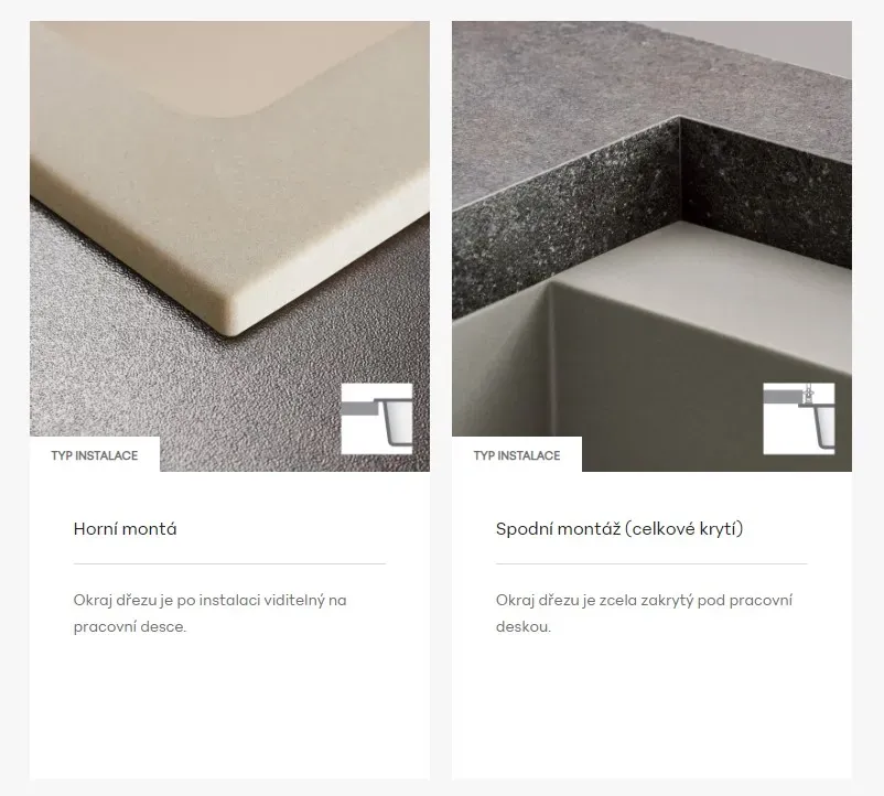 Okraj dřezu je po instalaci viditelný na pracovní desce.