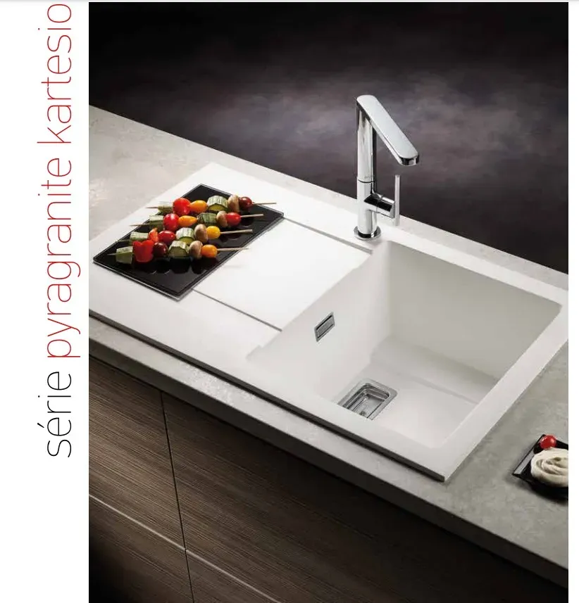 Pyragranitové dřezy PYRAMIS sodkapávání plochou jsou reverzibilní, takže můžete zvolit jeho orientaci v závislosti na potřebě a designu vaší kuchyně.