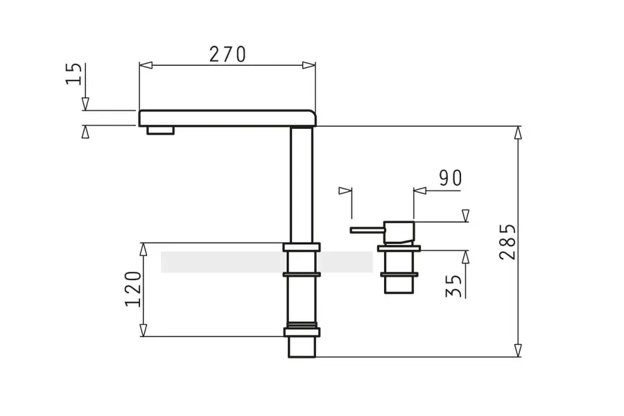 páková směšovací baterie s keramickým diskovým mechanisnem a výsuvnou hadicí, vhodná pro instalaci pod okno