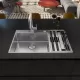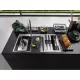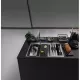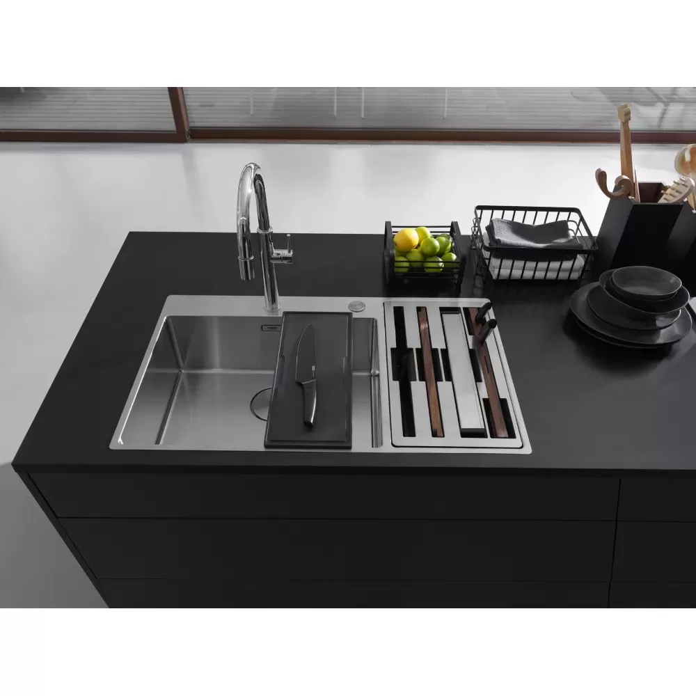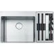 Nerezový dřez Box Center. Snadno kombinovatelné, skvěle organizované. Box Center je chytré a vysoce praktické řešení s krásným a přesvědčivým designem. Dva skvěle sloučené dřezy nabízejí prostor pro skladování a sušení často používaných kuchyňských doplňků, které jsou uloženy přímo tam, kde je nejvíce potřebujete. Cena zahrnuje: Doplňky: Miska, dřevěná přípravná deska, plastová přípravná deska, 3 nože vč. dřevěného držáku, odkapávač na nádobí, víko. Easy Click sítkový ventil 3 1/2" s přepadem a nerezovou krytkou ventilu. Sítkový ventil 3 1/2" s přepadem. Sifon pro úsporu místa 6/4" s odbočkou na myčku nádobí. Otvor pro baterii ∅ 35 mm a pro Easy Click knoflík ∅ 35 mm.