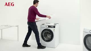 Uložení sušičky na pračku představuje prostorově úsporné řešení. Univerzální spojovací sadu lze použít pro všechny pračky a sušičky AEG s předním plněním a hloubkou od 52 do 67 cm.