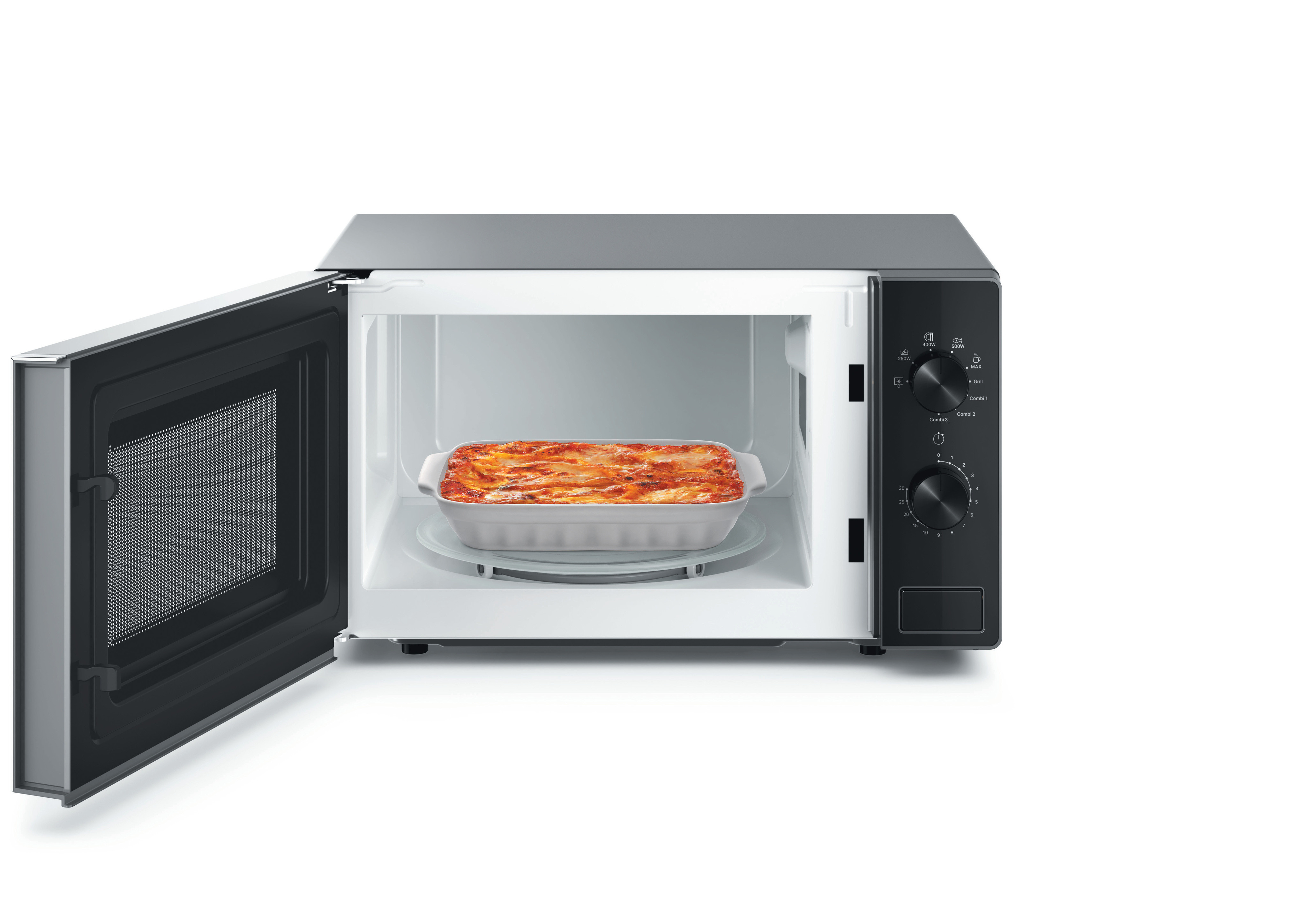 Výkonné grilování. Výkonná funkce mikrovlnného grilování poskytuje stejně chutné výsledky jako tradiční trouba.