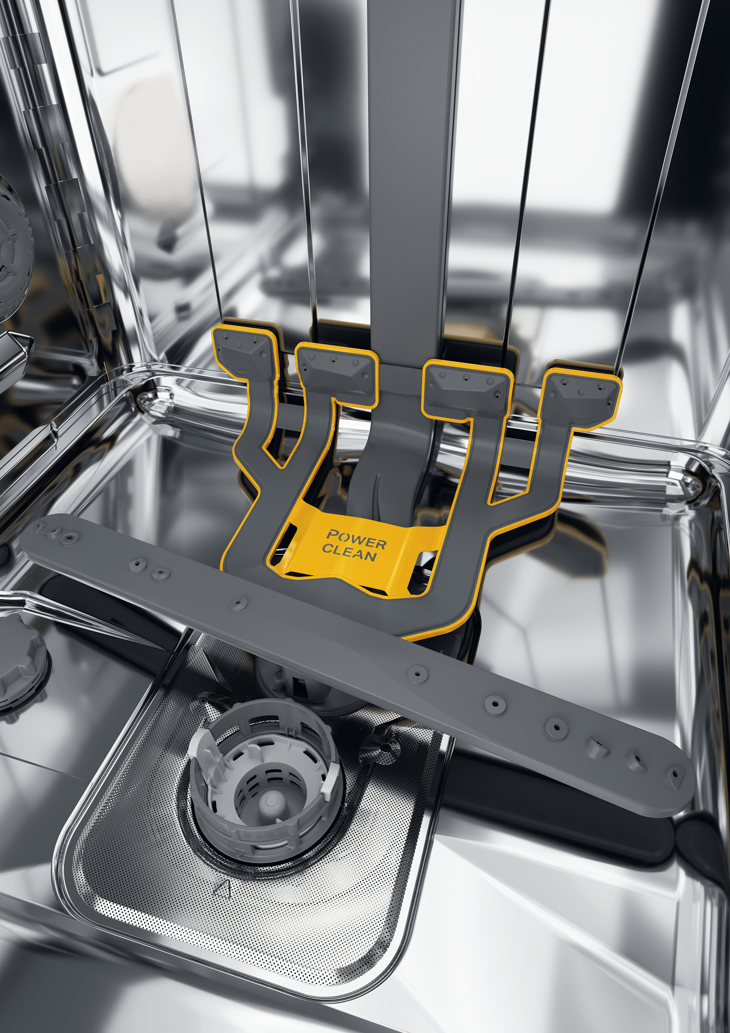 Až o 60 %* lepší výkonnější trysky ve spodním koši. Trysky lze aktivovat pro extra mycí sílu a zajištění dokonale čistého nádobí bez předmývání, a to i v případě velmi připálenych hrnců. Součástí technologie PowerClean Pro je také optimalizace polohování ukládaného nádobí, čímž vzniká o 30 %** více místa ve spodním koši (hrnce a pánve lze umístit na výšku).