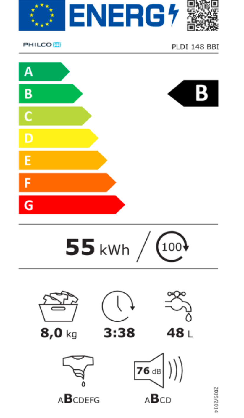 Vestavná pračka Philco PLDI 148 BBI s kapacitou prádla až 8 kg s možností až 1400 otáček za minutu v energetické třídě B. Díky BLDC ivertorovému motoru je spotřebič mimořádně úsporný.