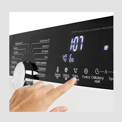 Umožňuje trvalé nastavení nejvíce používaného programu ve všech jeho parametrech od teploty praní po počet otáček při odstřeďování a jeho následné uložení jako Můj program.