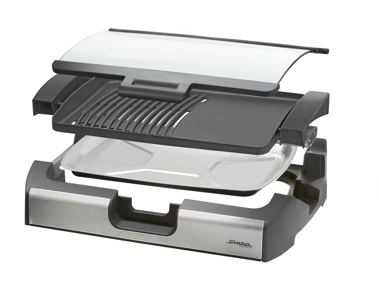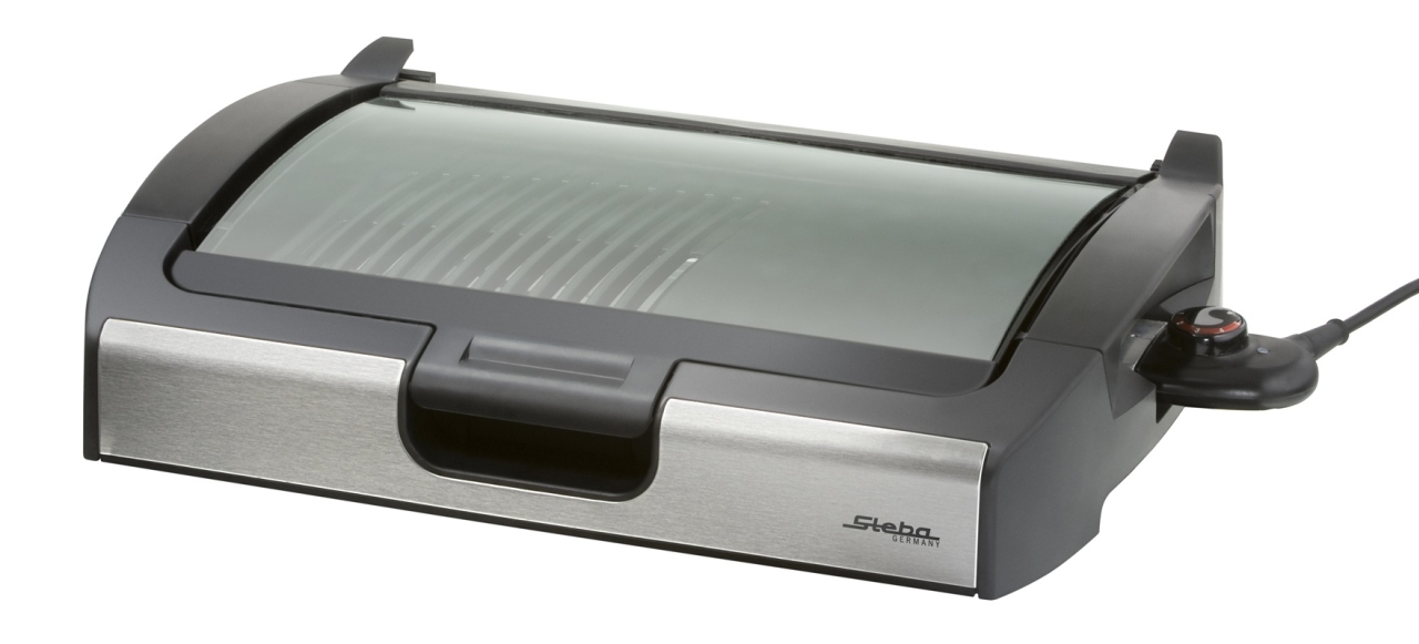 Stolní gril se skleněným poklopem • velká grilovací deska z aluminiové litiny s nepřilnavým povrchem (29,5 x 40 cm) • poklop ze skla pro urychlení přípravy pokrmů • nadbytečný tuk odtéká do samostatné nádoby - příprava pokrmů s minimem tuku • jednoduché a