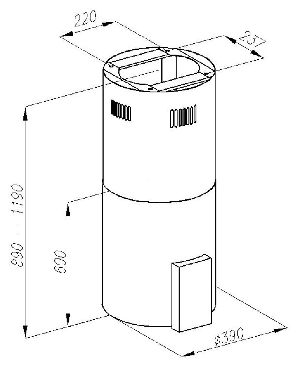 Rozměry (V x Š x H) 86,5-116,5 x Ø39 cm