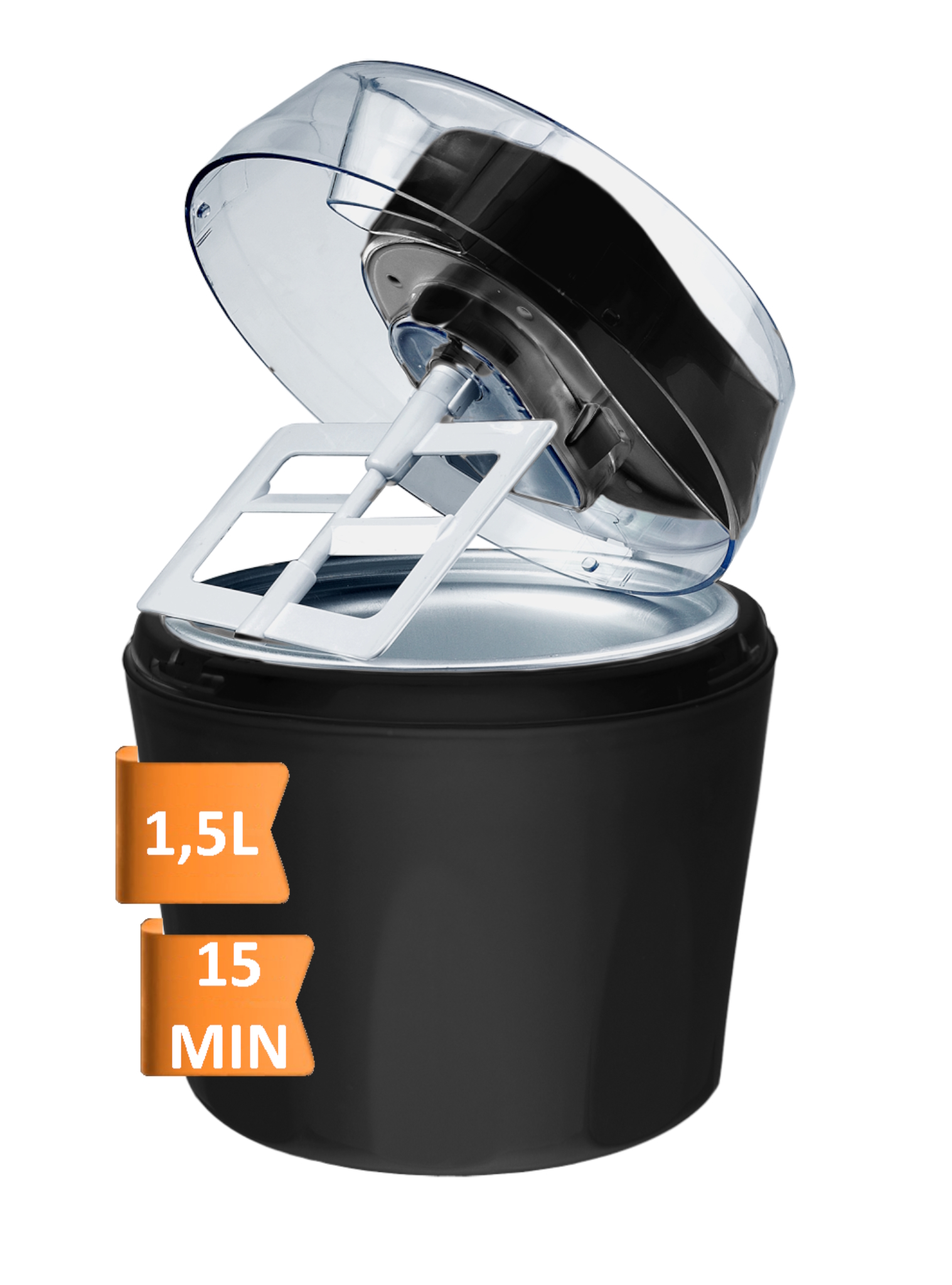 pomocí předmražené dvojitě izolované nádoby připraví výbornou zmrzlinu za 20 minut