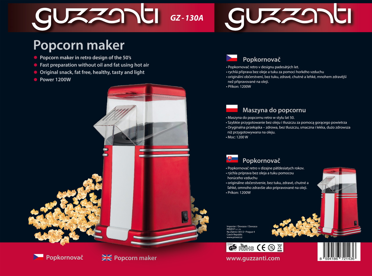 Popkornovač Guzzanti GZ 130A v RETRO designu padesátých let.