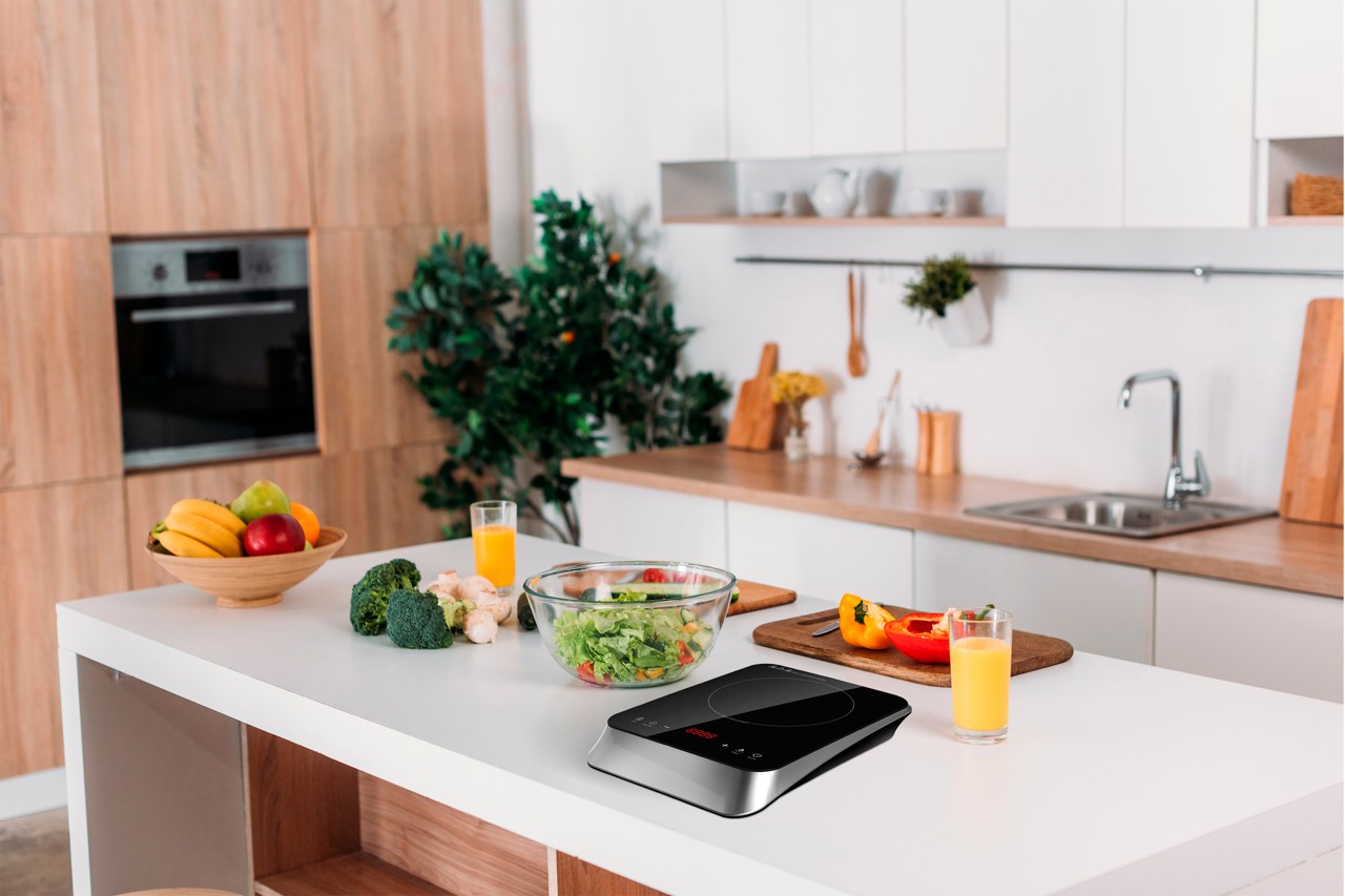 indukční vařič vaří jídlo ve výrazně zkrácených časech s pozoruhodnou úsporou energie (přibližně 30%)