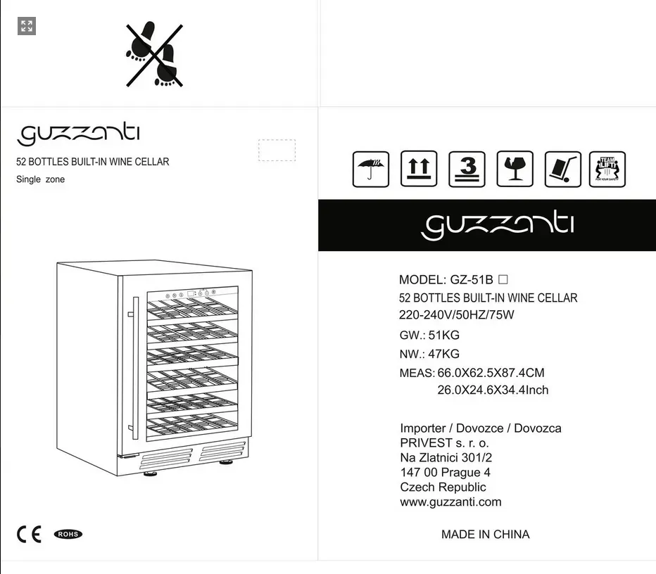 Kompresorová vestavná vinotéka Guzzanti GZ 51B