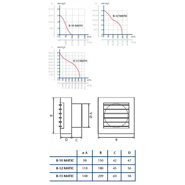 Axiální ventilátor na zeď, do stropu či do okna, pr. 120 mm, 190 m³/h, 45 dB(A), 5 mmH2O (49 Pa), IPX4, žaluzie, doběhový časovač