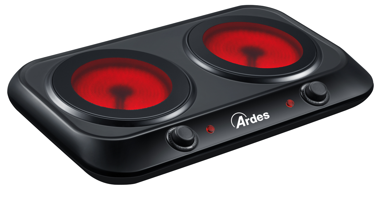 Dvouplotýnkový sklokeramický vařič s moderním a elegantním designem, kompatibilní se všemi typy nádobí.