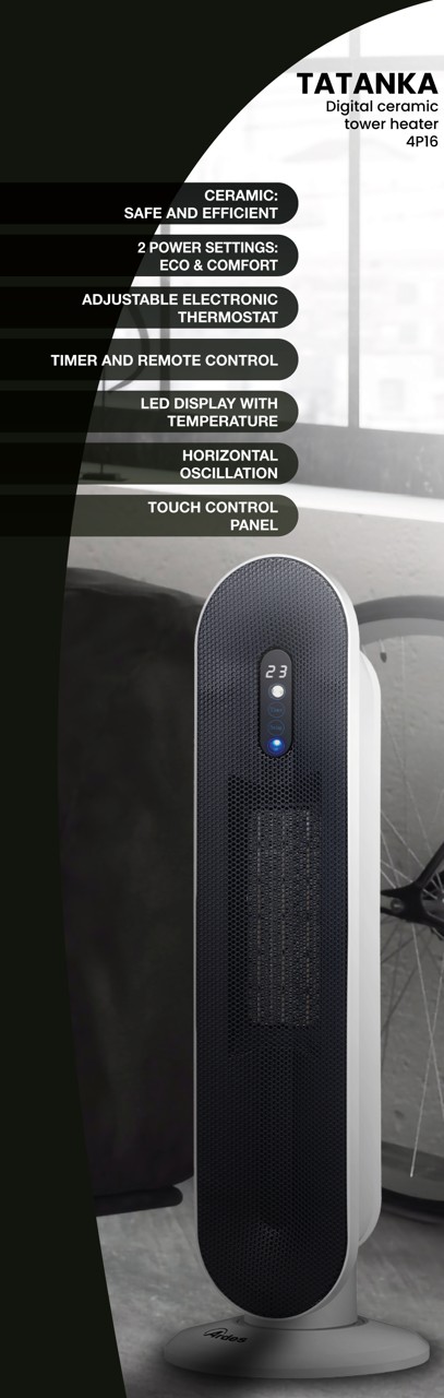 Digitální keramický sloupový teplovzdušný ventilátor s dotykovým ovládáním v moderním designu