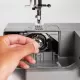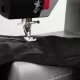 Robustní hliníkový rám zajišťuje výbornou stabilitu stroj, LED lampa pak perfektní osvětlení pracovní plochy snižující únavu očí při práci. Rozsáhlé příslušenství zahrnuje kluznou přítlačnou patku, speciální nitě a jehly pro šití kůže a denimu a nůžky na stříhání látky, tedy vše, s čím se můžete ihned pustit do šití.