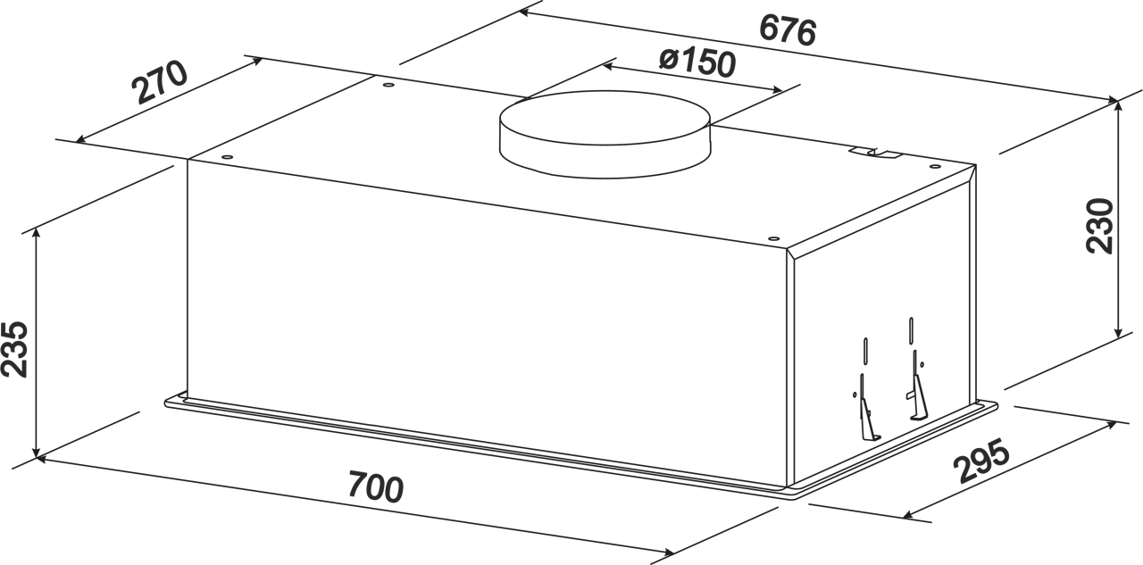 výstup pro vývod Ø150 / Ø120 mm s možností adapteru v příslušenství
