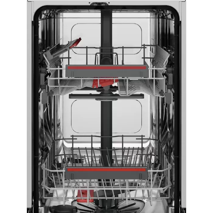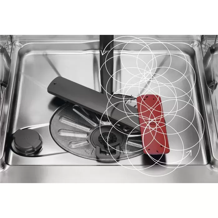 Dvě sprchovací ramena zajišťují maximální pokrytí vnitřního prostoru myčky vodou. Rotující ostřikovače posílají proudy vody do všech rohů dolního i horního koše. Na dokonalé výsledky mytí nádobí se tak můžete spolehnout.