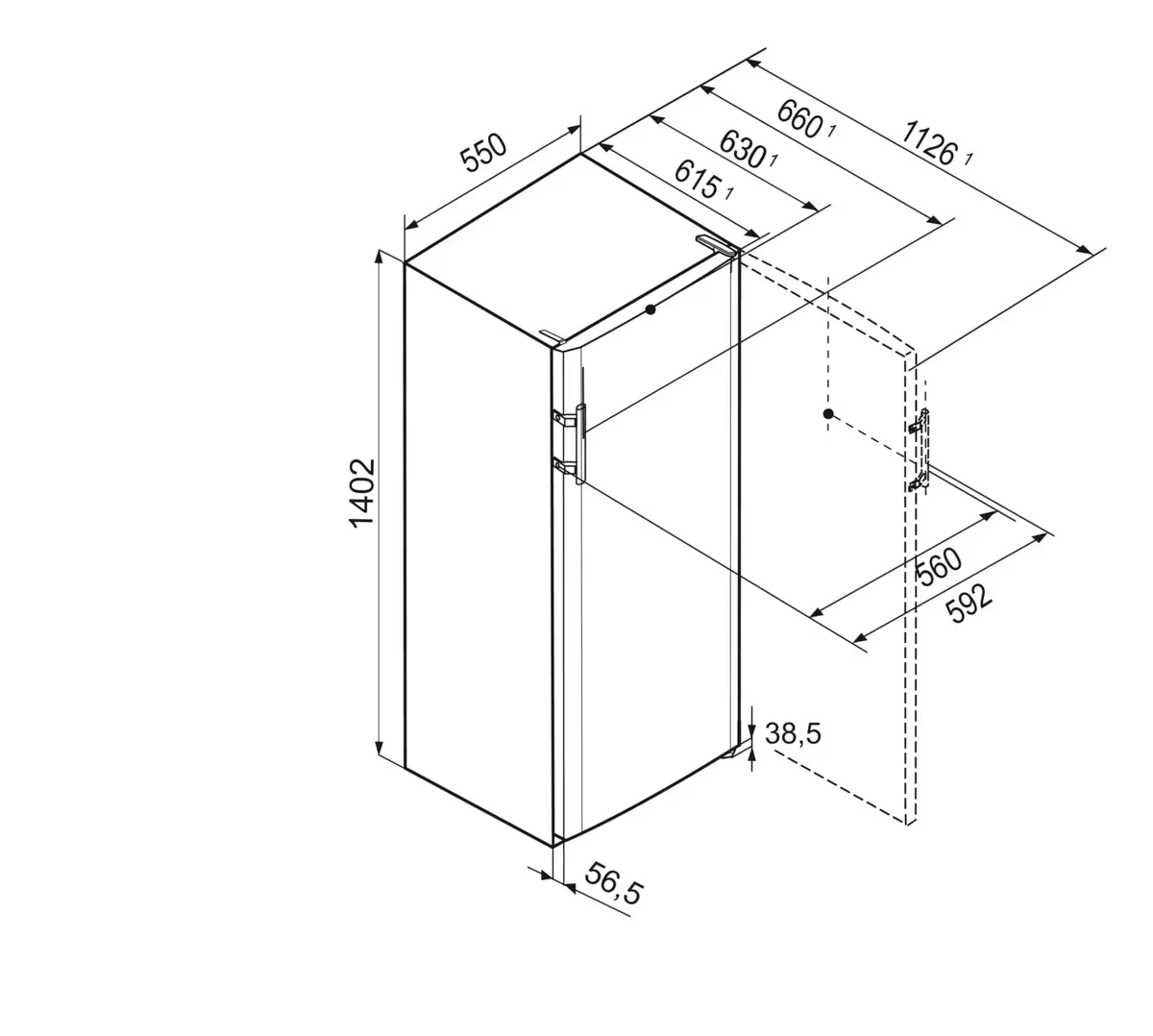 Vnější rozměry: výška / šířka / hloubka 140,2 / 55 / 63 cm