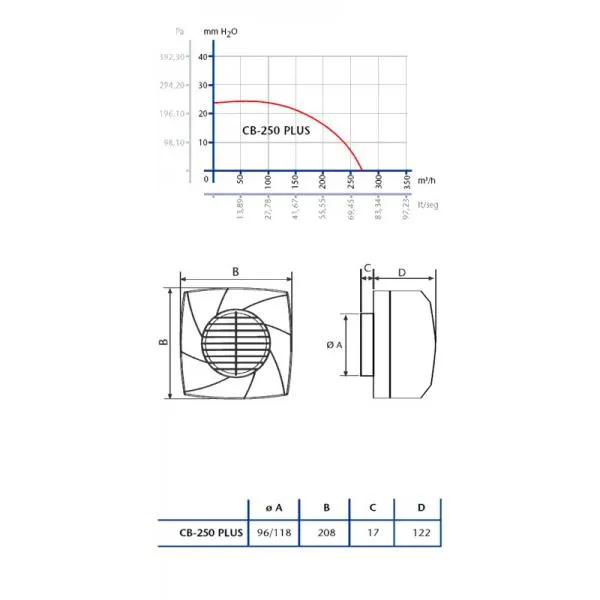 Radiální ventilátor na zeď či do stropu, pr. 100/120 mm (2 příruby součástí dodávky), 270 m³/h, 52 dB(A), 23 mmH2O (225 Pa), IPX4