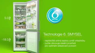 Technologie 6. SMYSL Nejlepší podmínky pro uchování jsou vždy zaručeny díky technologii 6. SMYSL. Ta detekuje jakékoli kolísání teploty způsobené vnějšími faktory a okamžitě obnoví ideální úroveň, a to jak v chladničce, tak v mrazničce.