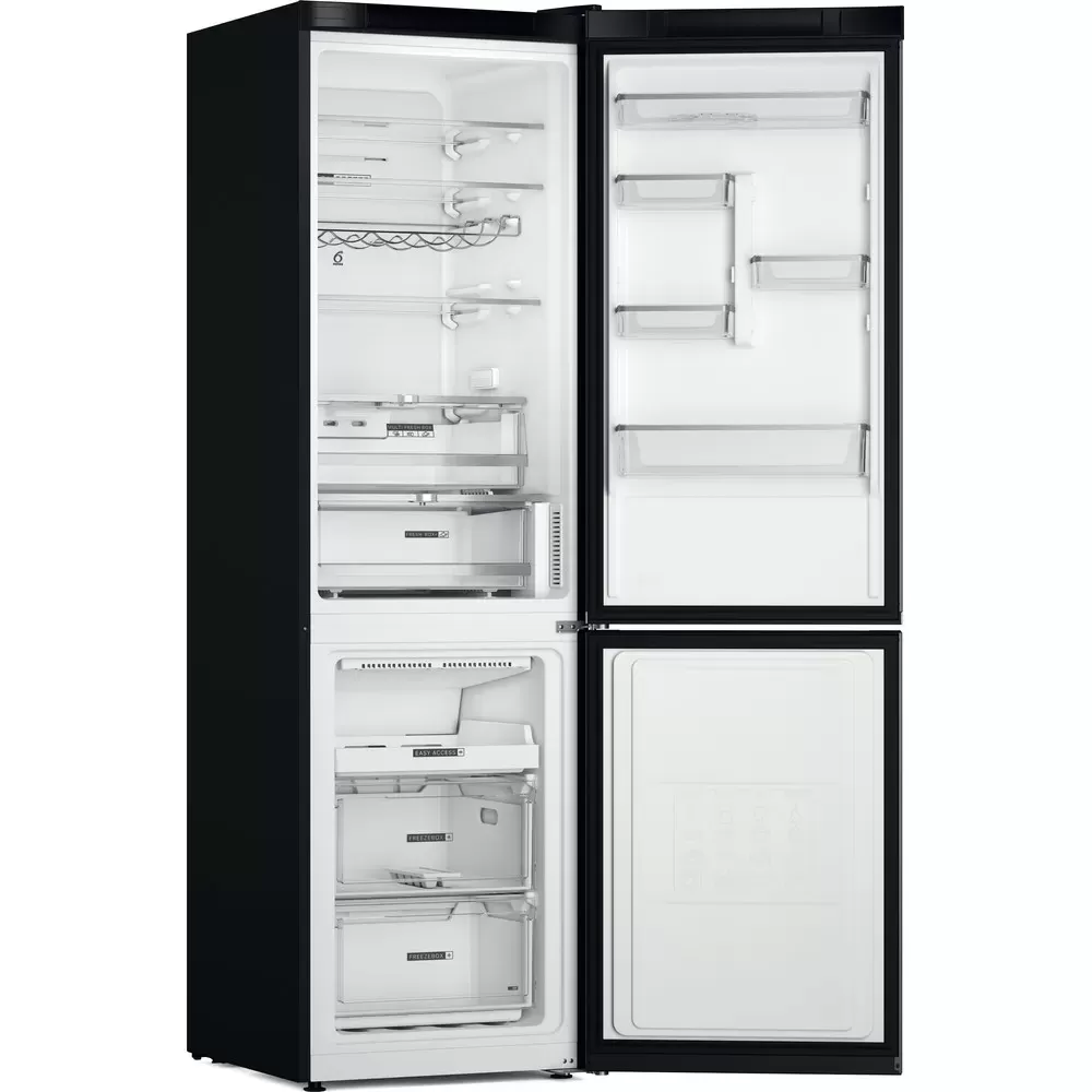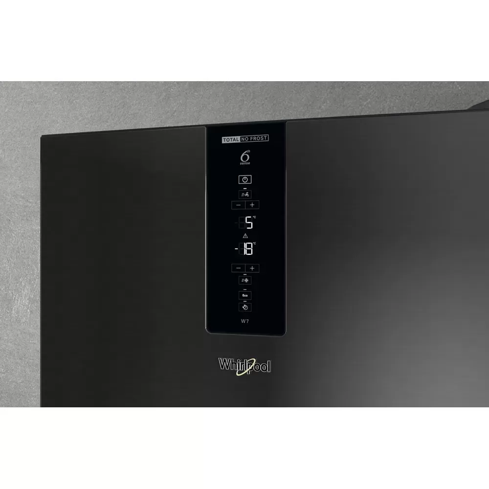 Přednosti této volně stojící kombinované chladničky Whirlpool: černá barva. Technologie No frost, beznámrazová technologie, která účinně zabraňuje tvorbě ledu v mrazničce tím, že snižuje úroveň vlhkosti. Vysoký spotřebič, který vyhoví potřebám vaší rodiny. Skleněné police, které poskytují pevnost i eleganci. Senzory 6. SMYSL, které automaticky snižují teplotu uvnitř spotřebiče po přidání nových potravin, čímž snižují spotřebu energie.